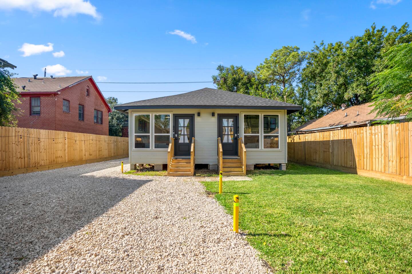****The kitchen and bathroom surfaces in this space are professionally BLEACH CLEANED in between every visit. BLEACH is the best disinfectant for sanitizing.** **Extra attention is paid to sanitizing this space to guard against any contagion.** **Please be assured we prioritize and are proactive about protecting our guests' health and safety.** The pictures we have in this listing are up to date and accurate. Maps may not have the most updated photos. This is a transitioning area that may appear rough but it's safe and very quiet at night. There is a ring doorbell for added security. Early check-in is subject to availability at the sole discretion of the host. Early check-in availability is determined on the day of arrival. The early check-in fee is $25. Late check-out is 12pm. Late check-out fee is $40. Late check-out is subject to availability at the sole discretion of the host. Late check-out is only applicable to reservations that have paid the $40 late check out fee. Late check-out can only be added to the reservation prior to check-out date. If you request late check-out on check-out day or overstay past normal 10:00 am check-out time then late check-out fee is $80. This $80 will be automatically deducted from your deposit. Check-in begins at 5:00 pm and check-out ends at 10:00 am. Multiple listings apartment. There is an additional yet to be determined commercial usage fee for guests who require filming video or audio on the property. The landscaper is scheduled to tend to the property every Sunday. There are always fresh fully laundered towels and sheets placed between every guest visit. Normal wear and tear, these towels and sheets may get stains and tears. This enables us to give our guests the best possible value and at the same time help the environment. Houston is a hot and humid climate, this climate causes a lot of bugs. We are aware that bugs can get into space. We do regular extermination to try to prevent bug problems but it's not a perfect solution. Please note that you may see bugs in the home. No refunds given if bugs are seen. No animals are allowed. For undisclosed pets/ service animals brought into the listing, there is an automatic ejection with no refund and $500 cleanup fee. Pets are not allowed on any furniture or beds as well please pick up your pet's waste. If there is excessive pet hair in the space we will not refund the $250 pet cleaning deposit fee. *Deposit Collection* (Only in the case of Pets and Underage guests) In the case of any deposit collection, we will need a picture of your government ID and a picture of the credit card used matching your ID. The picture only needs to show the last four digits of your credit card. We will not be able to give access to the space until these steps are completed. Thanks!