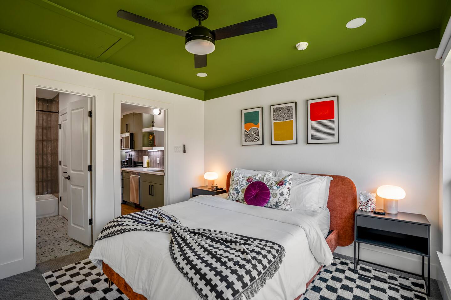 Welcome to our vibrant 1-bedroom oasis, where eclectic interior design meets cozy comfort! This space is a visual delight, bursting with unique decor and playful touches that make every moment special. - Colorful living room with smart TV - Fully-equipped kitchen for culinary adventures - Stylish bedroom with comfy bed & whimsical decor - Chic bathroom with essentials Perfect for couples, solo travelers, or groups of 4!