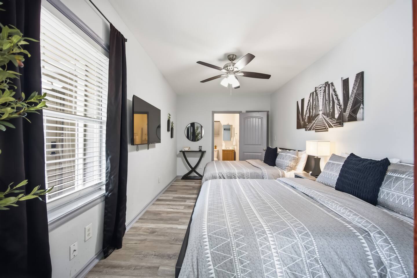 Located in the vibrant East End of Houston, this charming and inviting suite offers tremendous value for the discerning guest. Can accomodate **up to 4 guests**, this thoughtfully designed space is perfect for business travelers, families, or friends looking for an amazing Houston location. This smart suite features: * Two comfortable full-size beds with cozy pillows and linens * Super-fast WiFi * Fully equipped kitchen with all utensils and cookware * In-unit washer and dryer for added convenience * Spacious private patio — perfect for relaxing * Plenty of parking And so much more... Come and experience this exceptional value suite for yourself and enjoy comfort, convenience, and a prime Houston location all in one place.